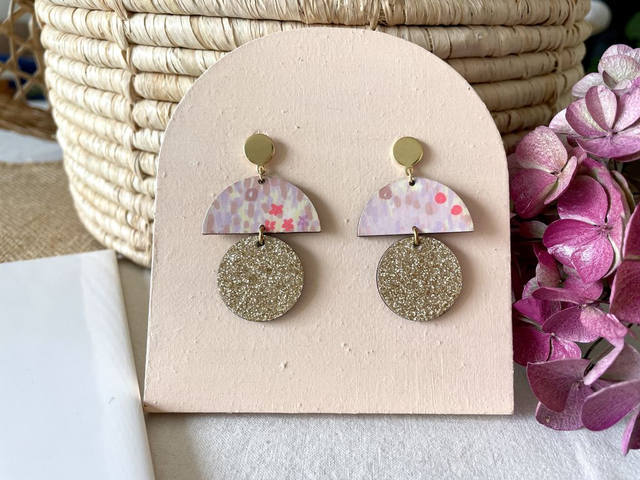 Boucles d’oreilles Demi lune et rond - Couleurs variées (doré)