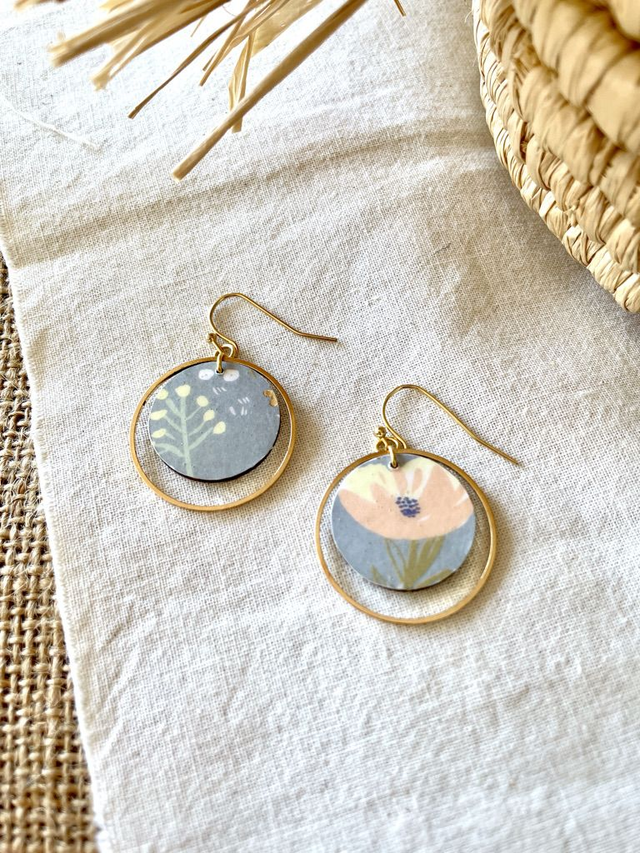 Boucles d'oreilles poétiques en bois et papiers origami