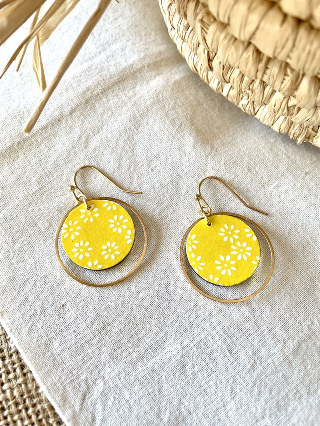 Boucles d’oreilles Rond taille M et cercle doré - Couleurs variées