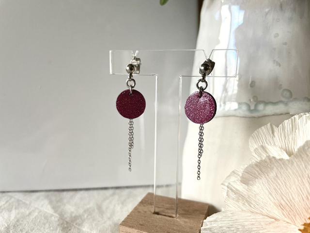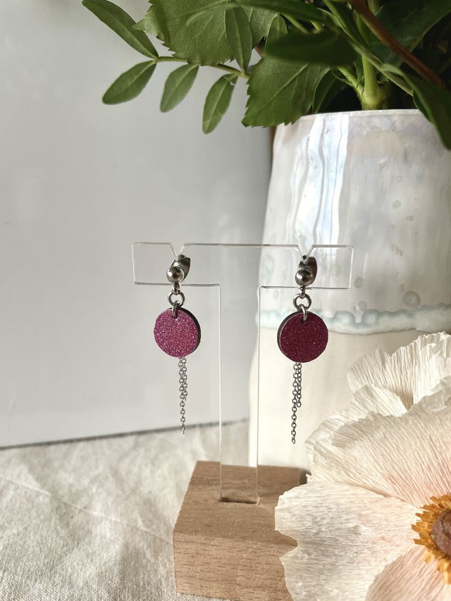 Boucles d’oreilles Rond taille S et chaines argentées - Couleurs variées