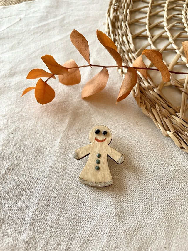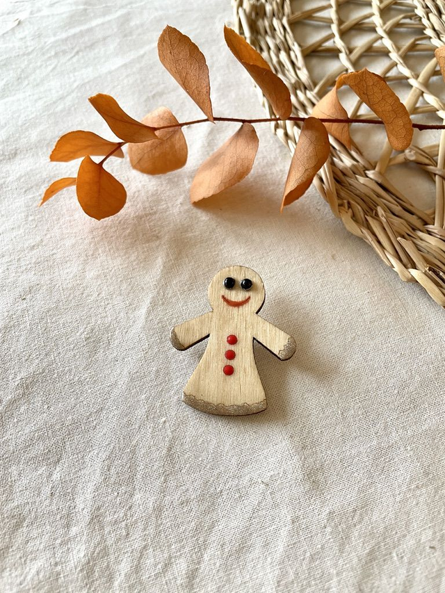 Broche dans le thème du Noël traditionnel, en bois et paillettes.