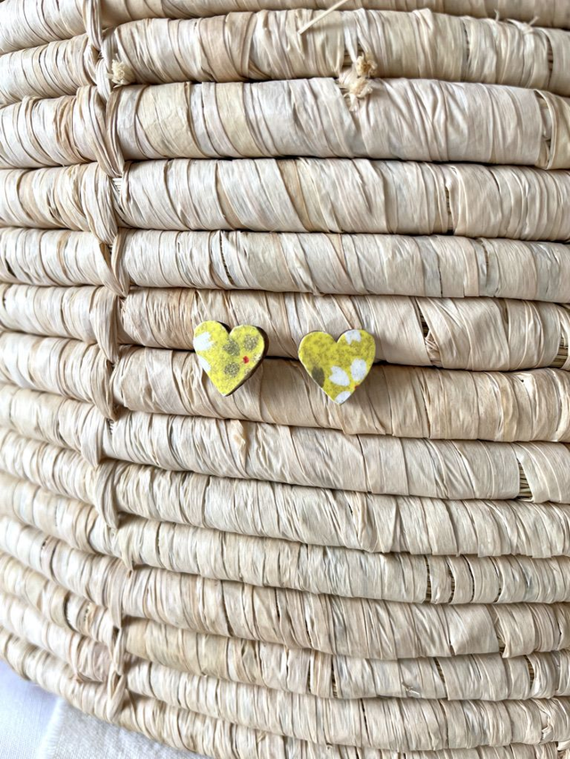 Laissez-vous séduire par ces adorables puces d’oreilles en forme de cœur, réalisées à la main. Fabriquées à partir de bois léger recouvert de papier origami ou de paillettes scintillantes, elles offrent un design délicat et féminin. Les apprêts en acier inoxydable garantissent un port confortable et hypoallergénique.