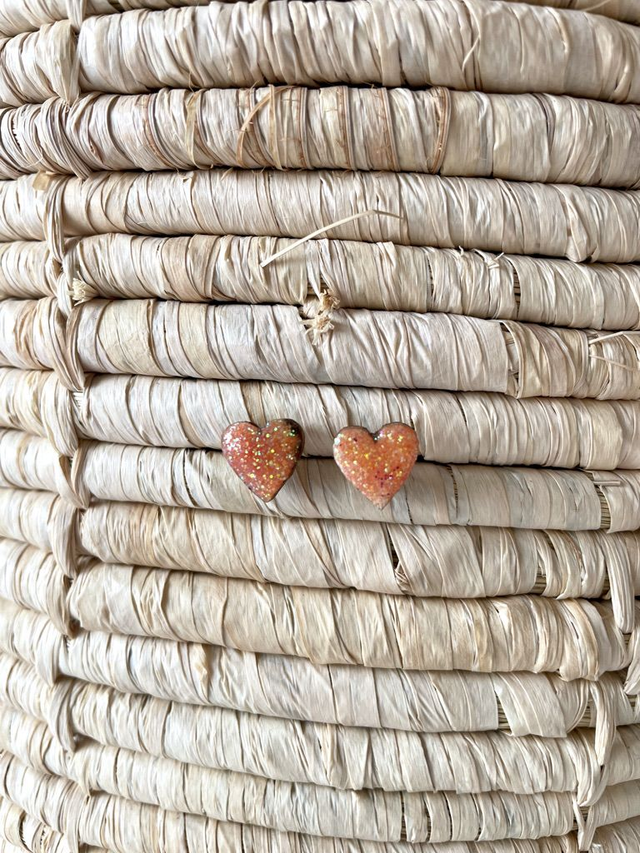 Puces d’oreilles coeurs - Couleurs variées (tons chauds)